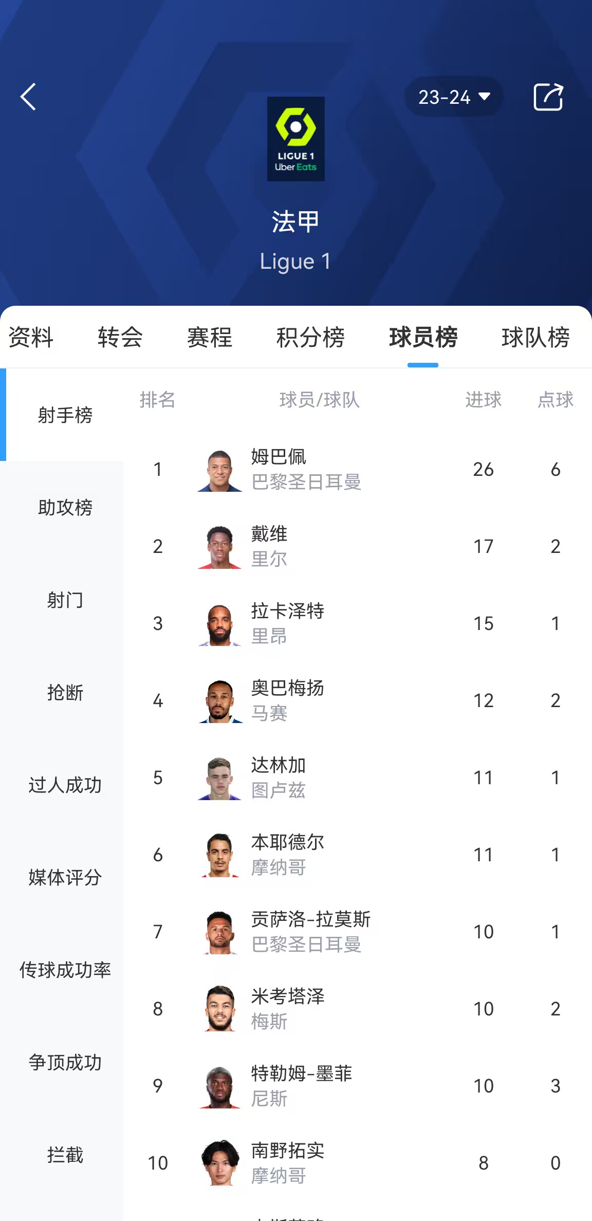 自2018-19賽季以來(lái),姆巴佩已經(jīng)連續(xù)五個(gè)賽季贏得了法甲金靴獎(jiǎng),本賽季他有很大的機(jī)會(huì)連續(xù)六年贏得這一榮譽(yù)。姆巴佩本賽季進(jìn)了26個(gè)球,領(lǐng)先第二個(gè)9個(gè)球。